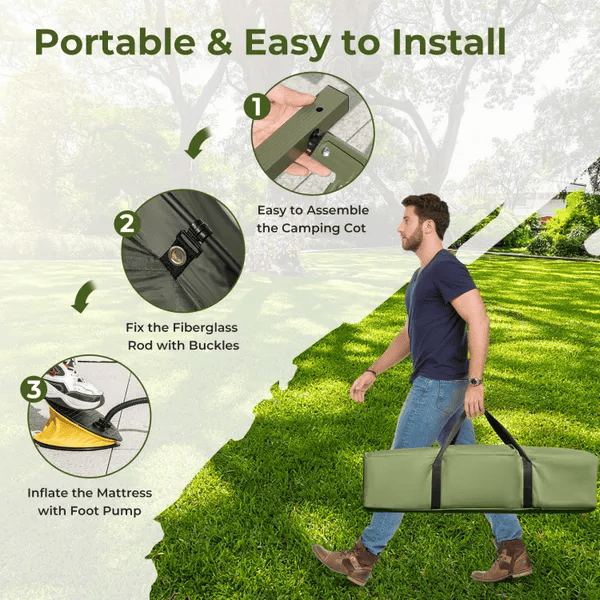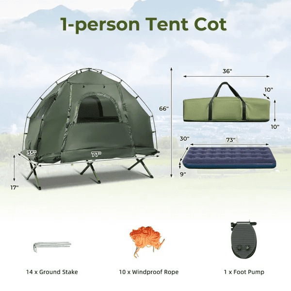 1-Person Folding Camping Tent – 5-in-1 Combo with Cot & Air Mattress