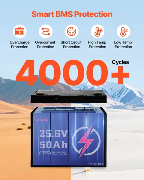 ✅ 4000+ Cycles — Long-lasting deep-cycle performance.