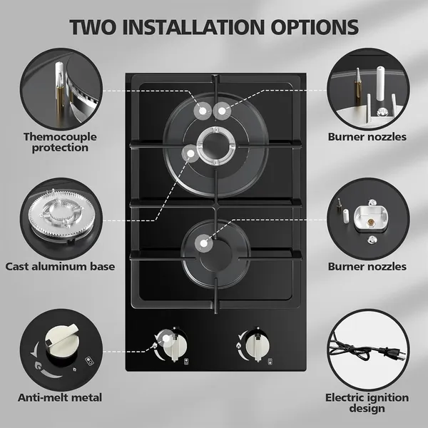 The Nafewin 12-inch 2-burner gas cooktop gives you strong heating power in a small, portable design. With 3.3 kW and 1 kW burners, you can boil, fry, simmer, and cook meals quickly at home or outdoors. It works for indoor kitchens, RVs, campers, small apartments, and outdoor cooking areas.