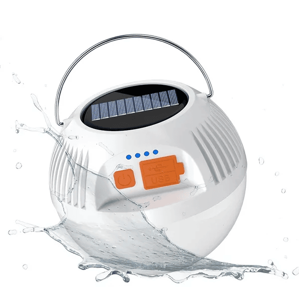 This spherical solar lantern is a simple “grab-and-go” light for camping, RV awnings, tents, and power-outage backup. It recharges by solar and also supports USB recharge, so you can top it up at home and still have an off-grid option later.